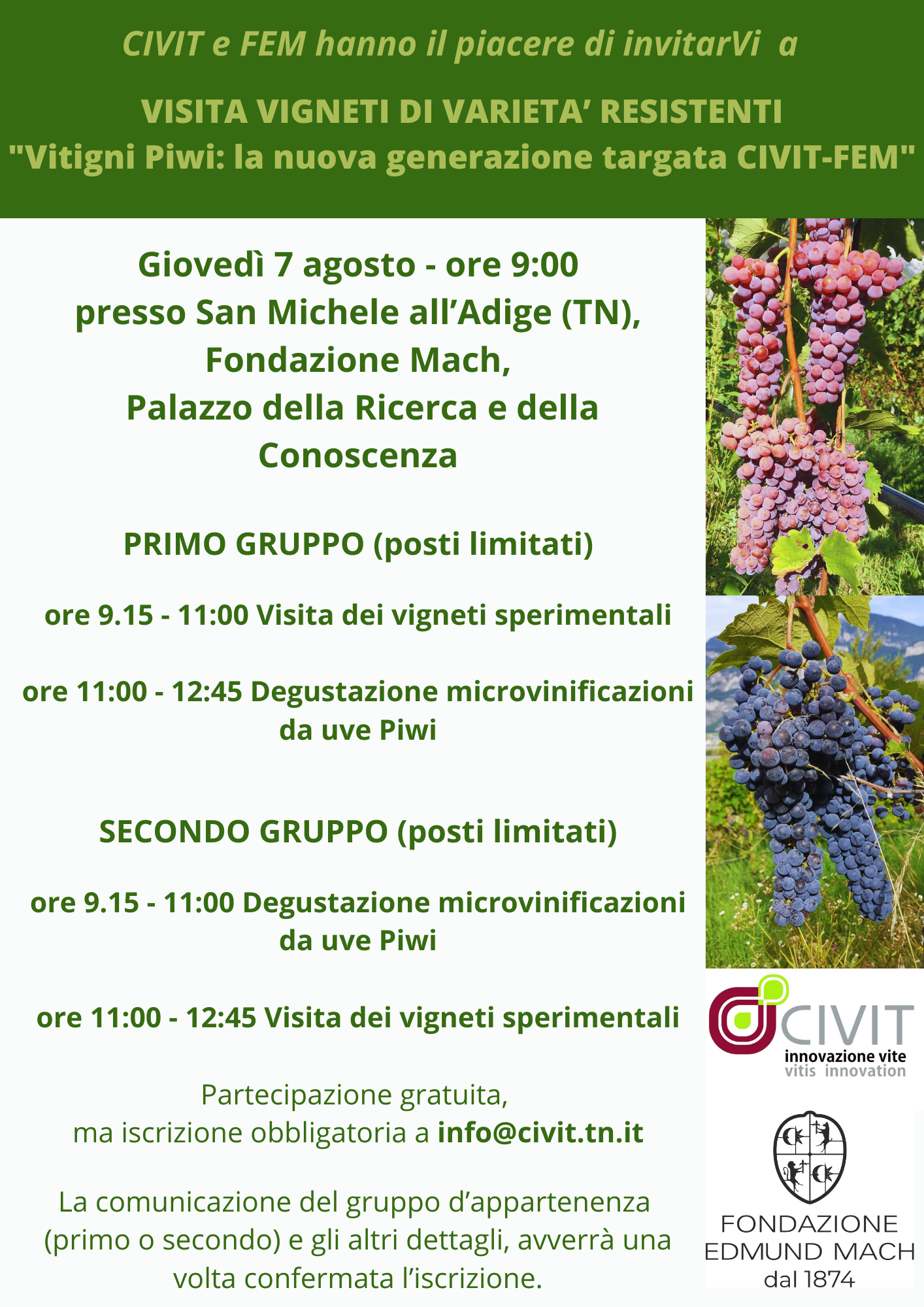 Partecipazione gratuita. Saranno formati due gruppi. I posti sono limitati: iscrizioni da richiedere a info@civit.tn.it